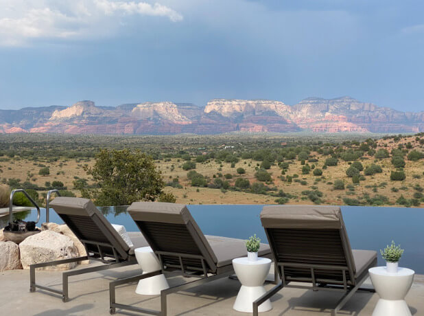A: It’s truly a resort experience. You’ll have access to a pool, hot tub, putting green, gym, game room, and outdoor entertainment areas, all with panoramic Sedona views. See the full amenity list on the About Page.